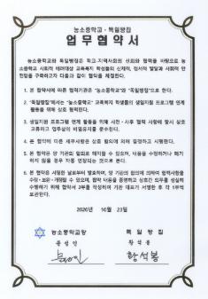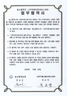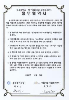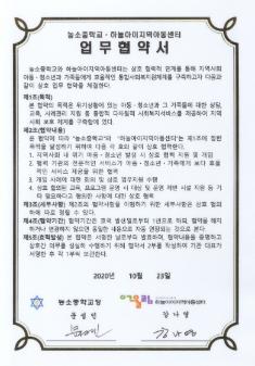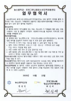농소중학교 2020년 농소중학교-하늘아이지역아동센터간 맺은 업무협약서