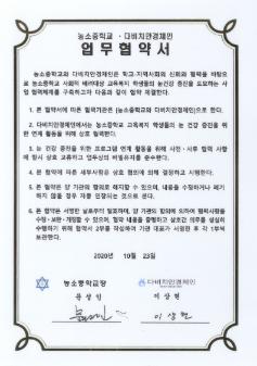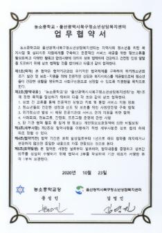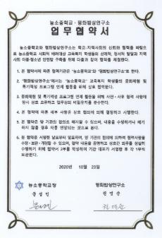 농소중학교 2020년 농소중학교-평화밥상연구소간 맺은 업무협약서