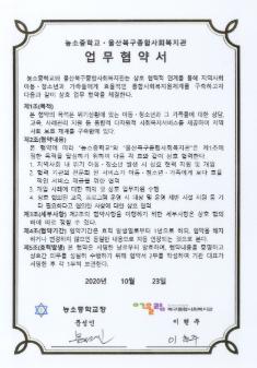 농소중학교 2020년 농소중학교-울산북구종합사회복지관 업무협약서