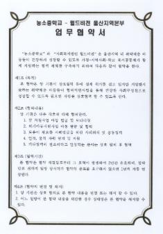 농소중학교 2020년 농소중학교-월드비전 울산지역본부 업무협약서