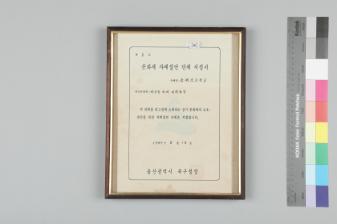 동해초등학교 1997년 문화재 자매결연 단체 지정서(대상문화재: 어물동 마애 여래좌상)