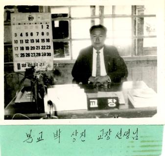 향산국민학교 본교 박상진 교장선생님의 모습을 찍은 사진이다.