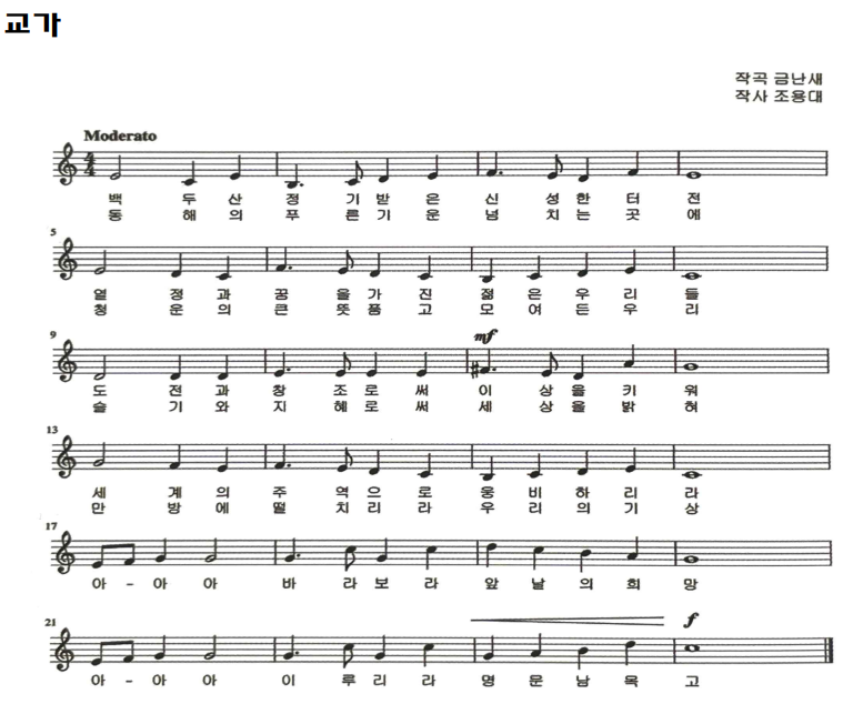 남목고등학교 교가 악보