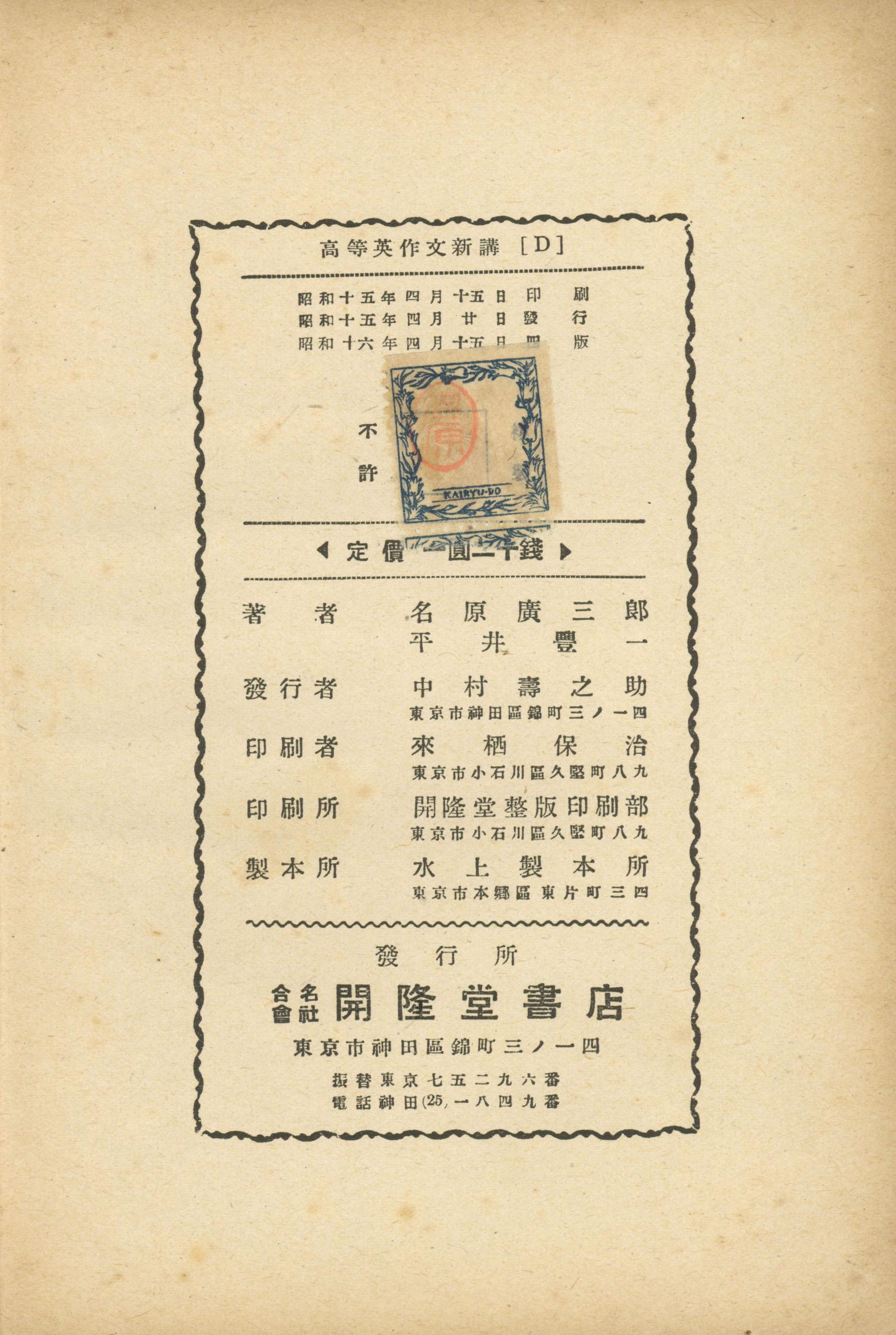 언양중학교 소화16년(1941년) 개륭당서점 발행 our college english composition 교과서
