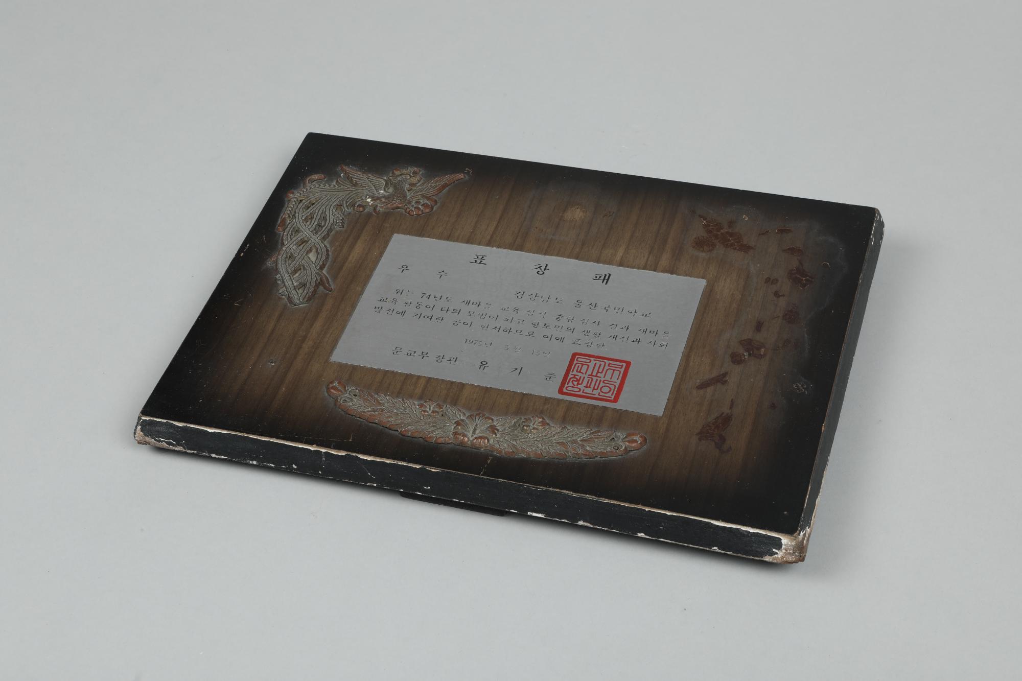 울산국민학교 1975년 문교부로 부터 받은 1974년도 새마을 교육 실적 종합심사 결과 우수 선정 표창패