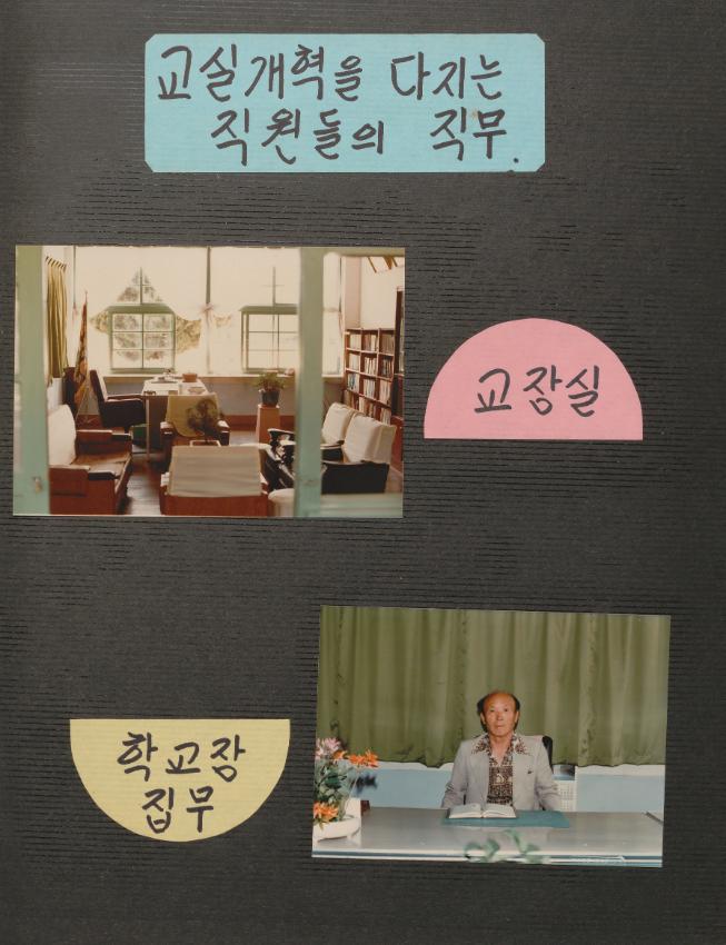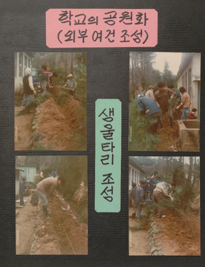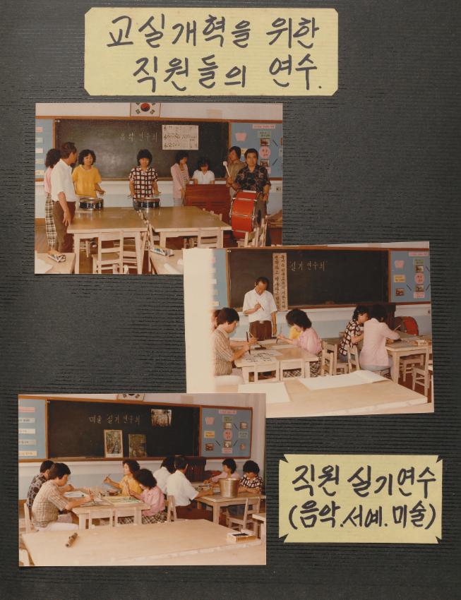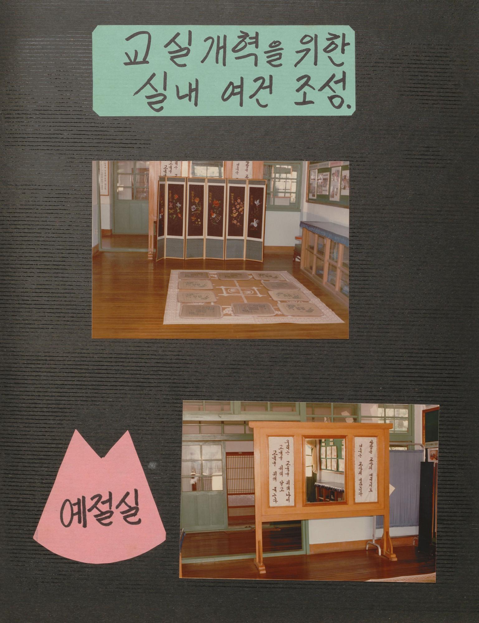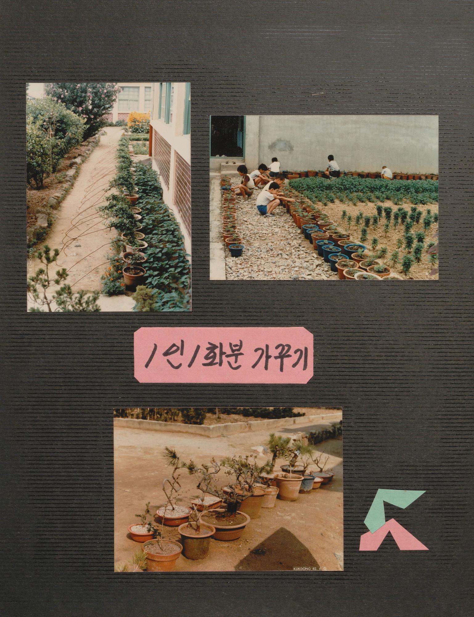 검단국민학교 1970년대 안으로 교실개혁 밖으로 교육홍보 사진앨범_1900년대 학교전경, 교실환경, 생울타리 조성, 입학식, 어버이날 소체육대회, 경로잔치, 모범어린이 시상, 교실 개혁을 위한 직원들의 연수 등 "안으로 교실개혁 밖으로 교육홍보" 사진앨범