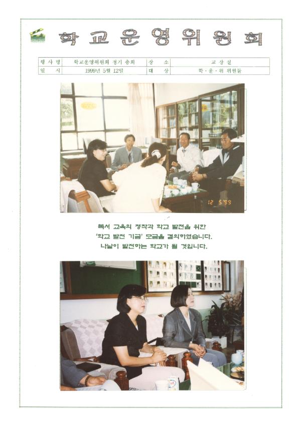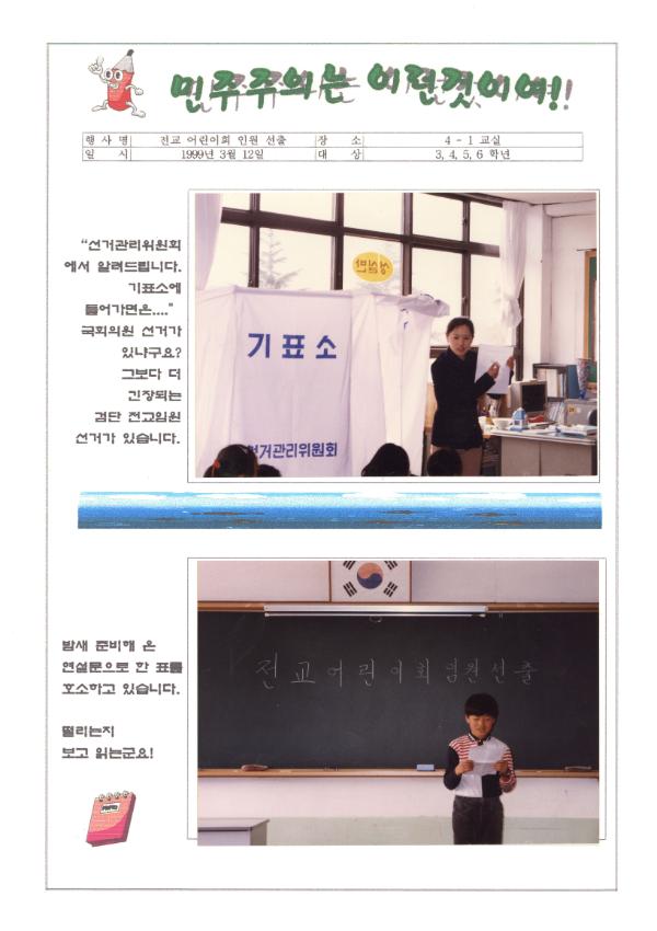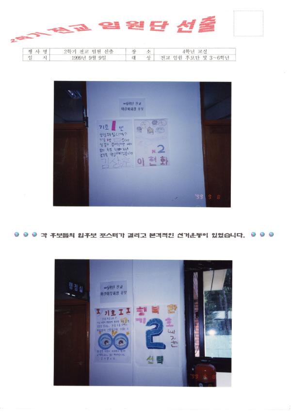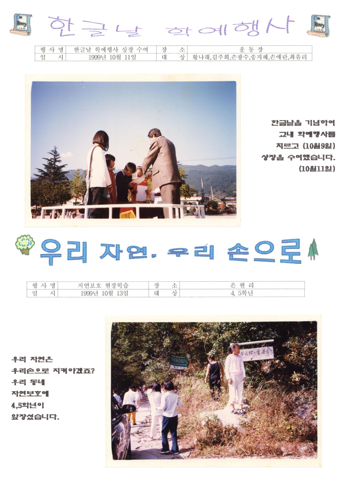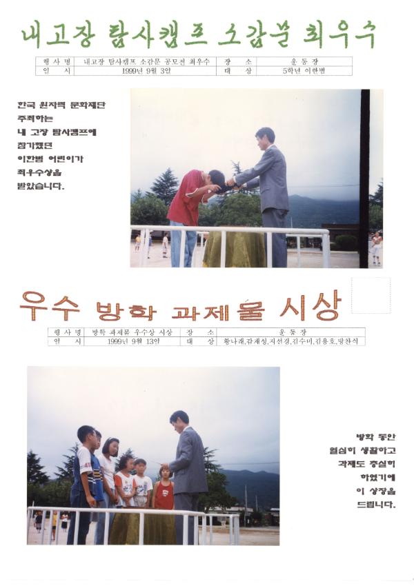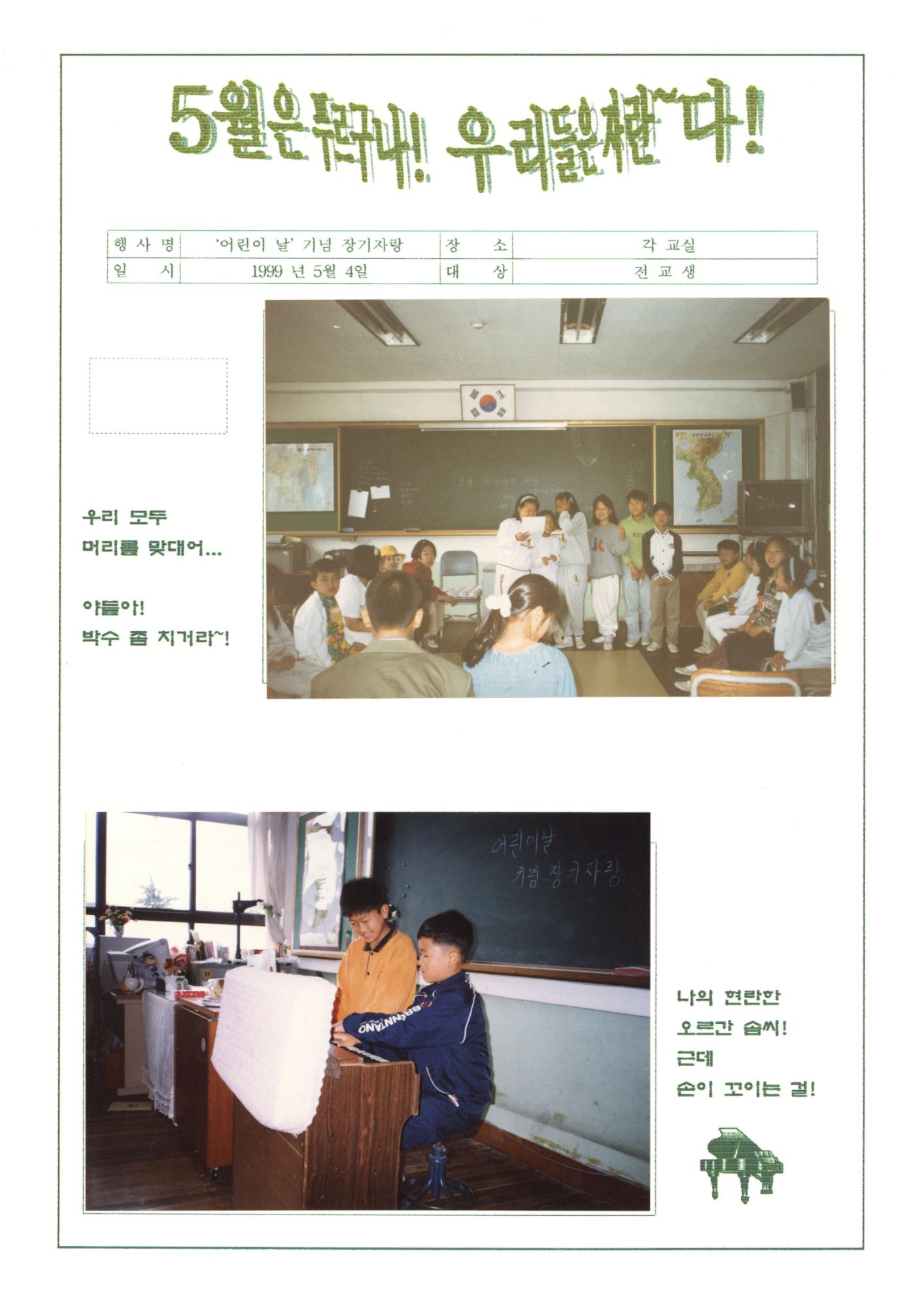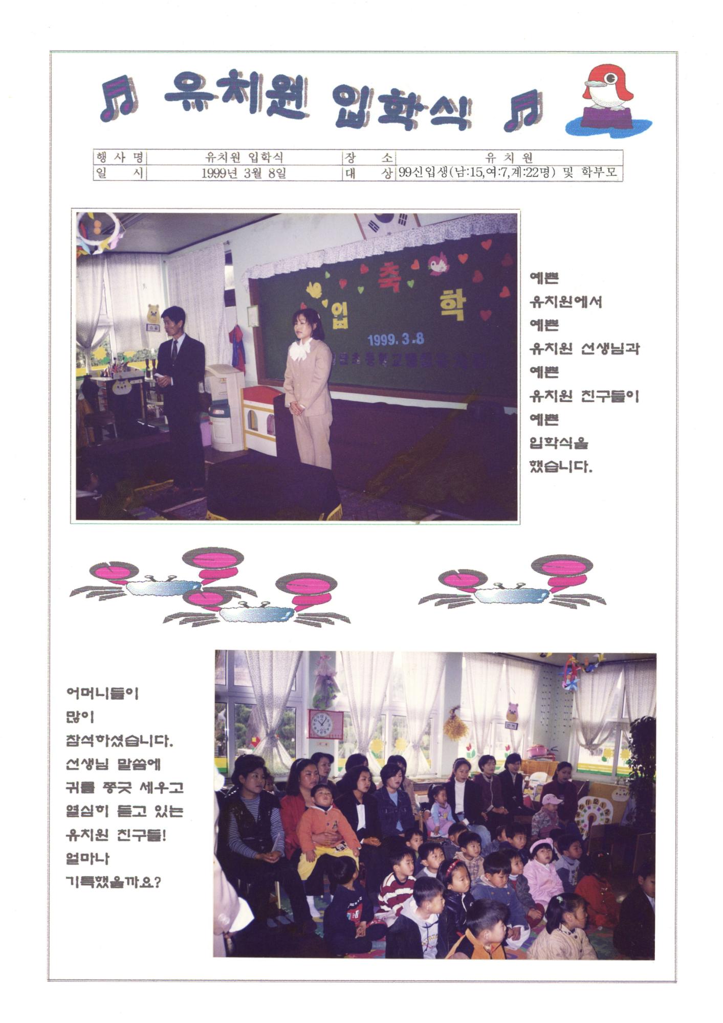 검단초등학교 1999학년도 학교발전사진첩 (99 학교 경영사진첩)_1999학년도 입학식, 전교어린이회 임원 선출, 학생 건강 검진, 장관상 전수식, 전반기 장학 협의회 실시, 뇌염 접종, 총동창회, 학교 보수·정비 공사 등 학교발전사진첩 (99 학교 경영사진첩)