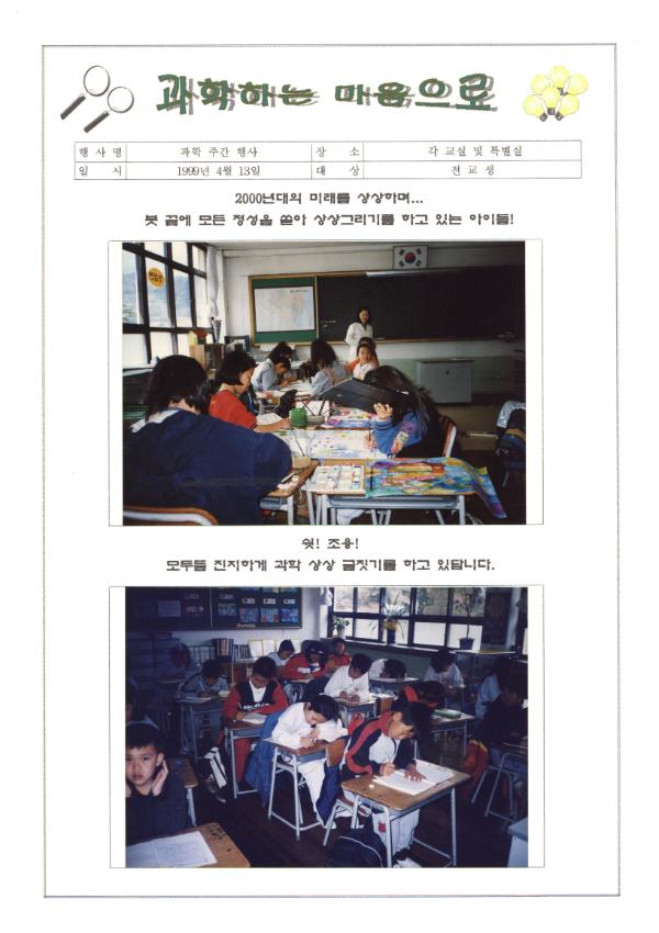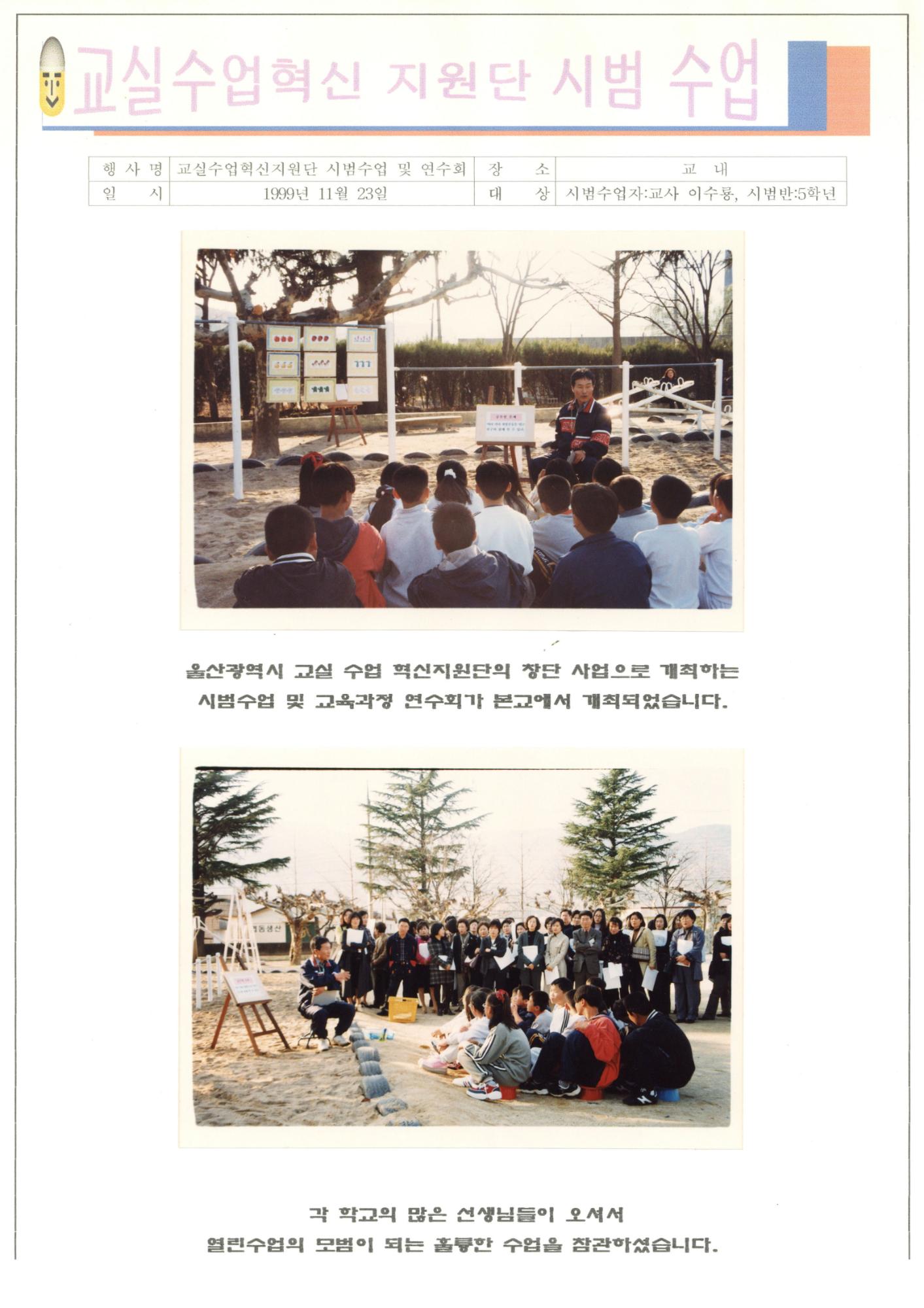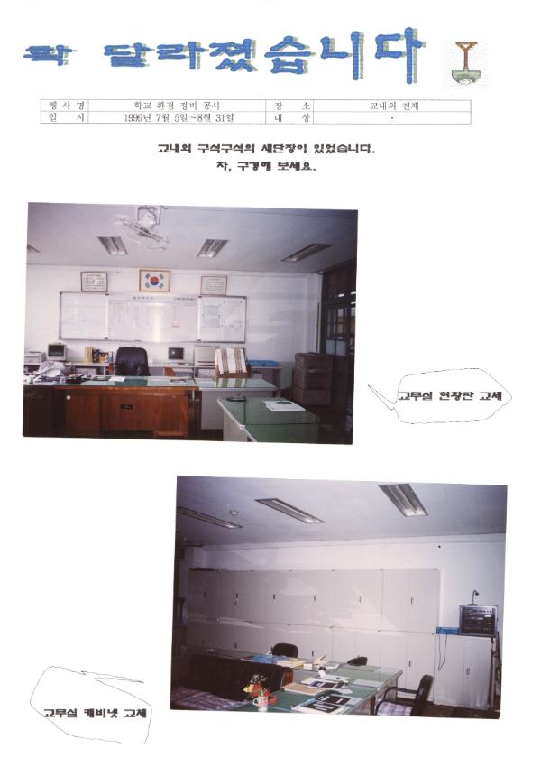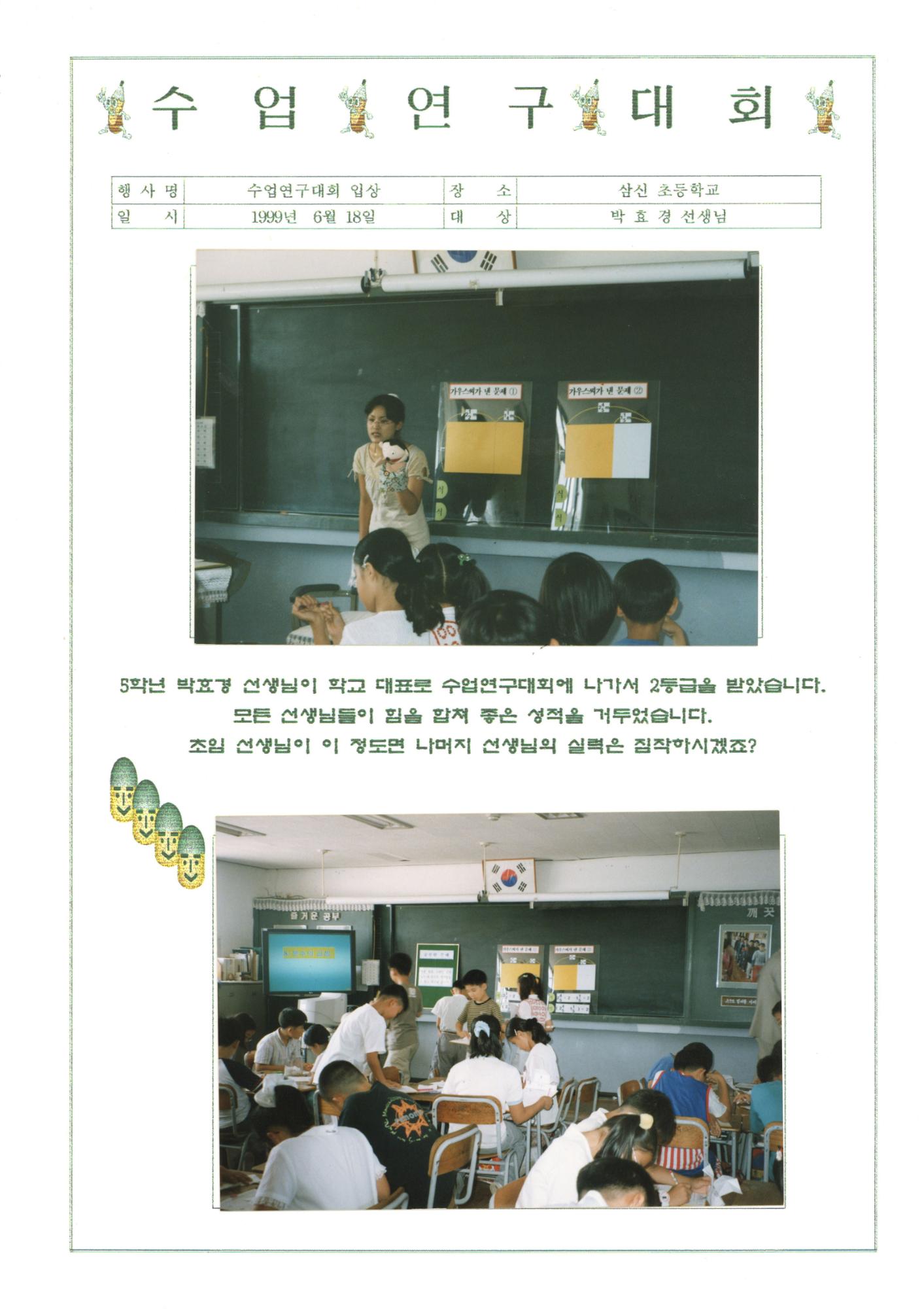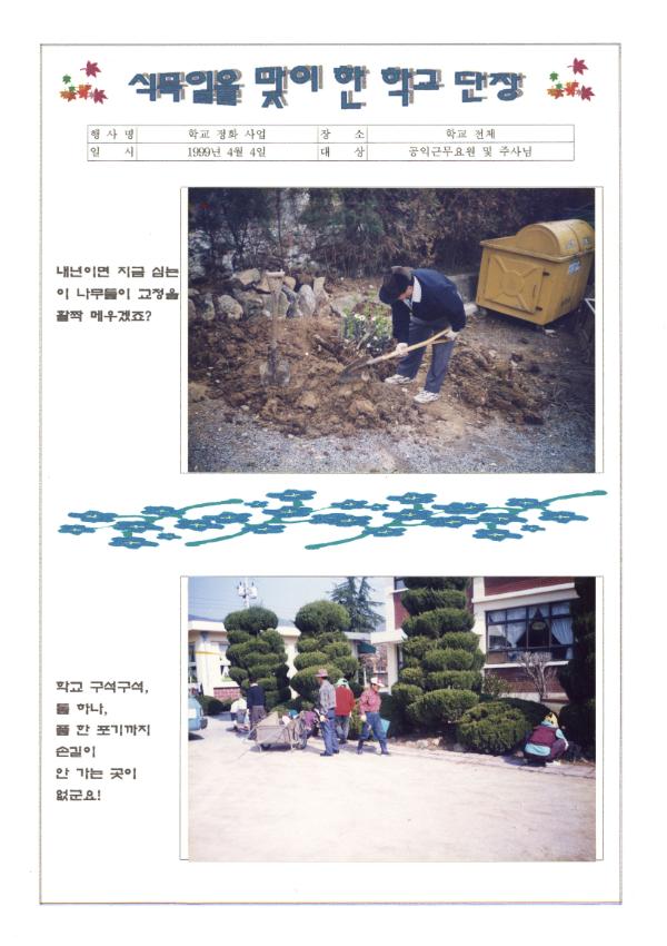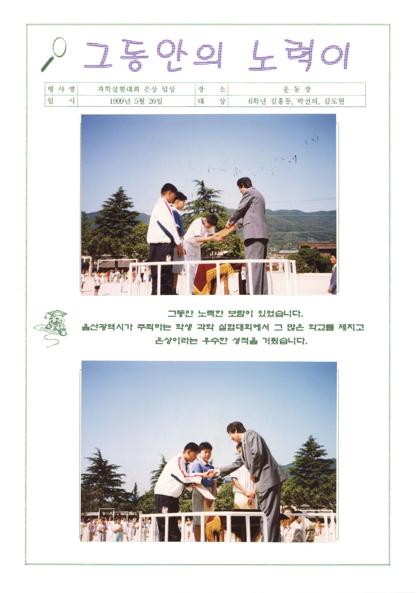 검단초등학교 1999학년도 학교발전사진첩 (99 학교 경영사진첩)_1999학년도 입학식, 전교어린이회 임원 선출, 학생 건강 검진, 장관상 전수식, 전반기 장학 협의회 실시, 뇌염 접종, 총동창회, 학교 보수·정비 공사 등 학교발전사진첩 (99 학교 경영사진첩)