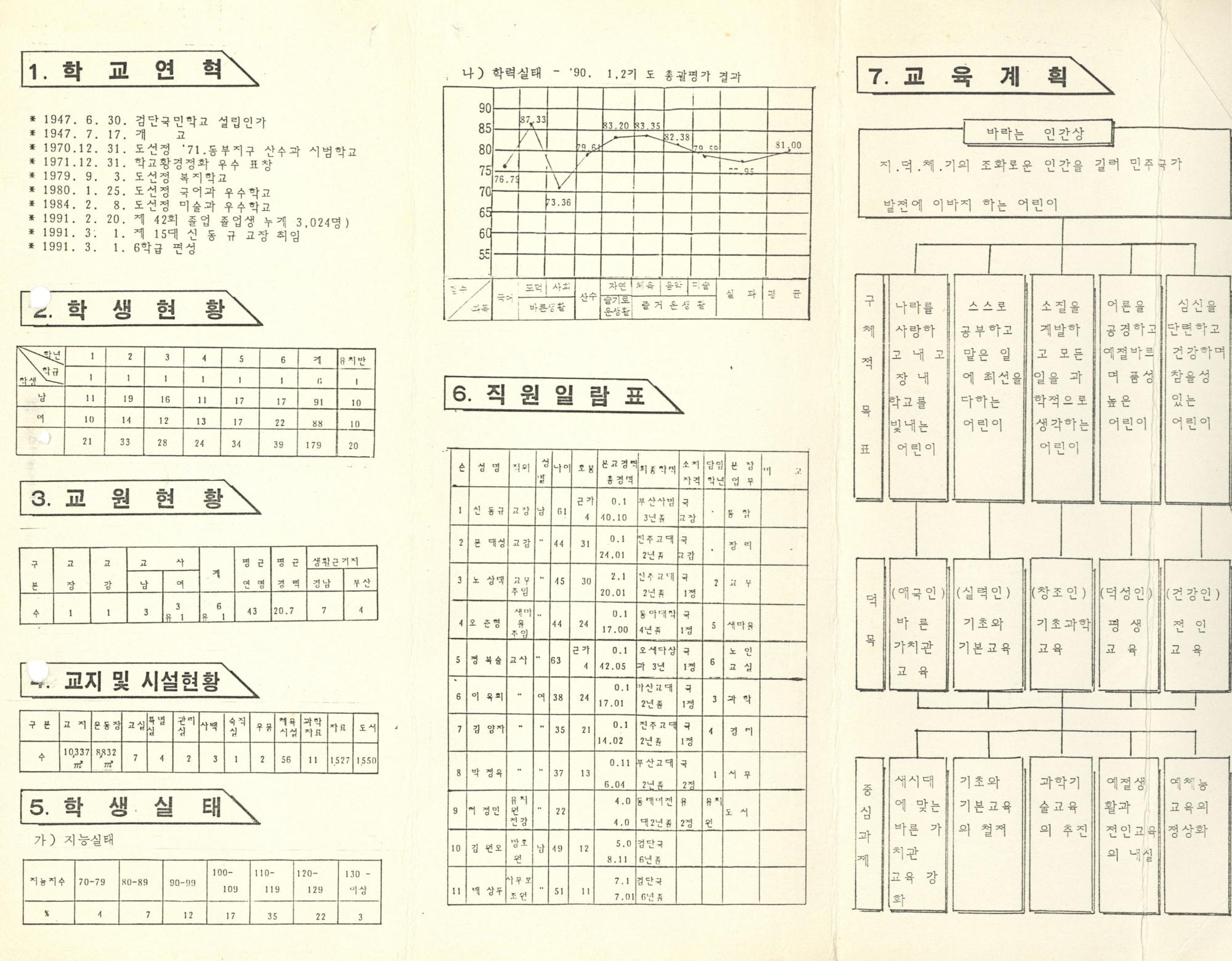 검단국민학교 1991학년도 학교요람