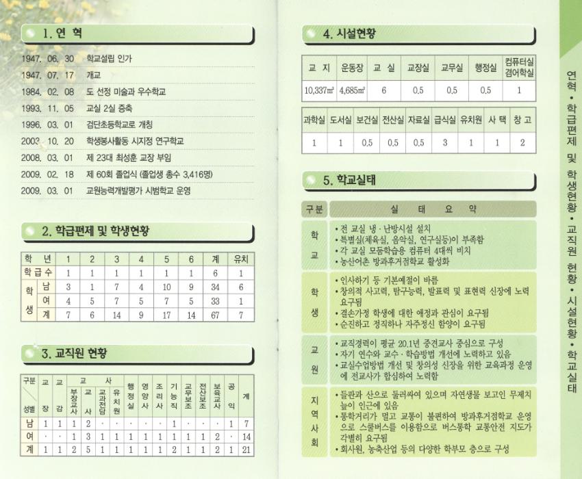 검단초등학교 2009학년도 학교안내 리플릿_들꽃처럼 향기롭고 들풀처럼 꿋꿋하게