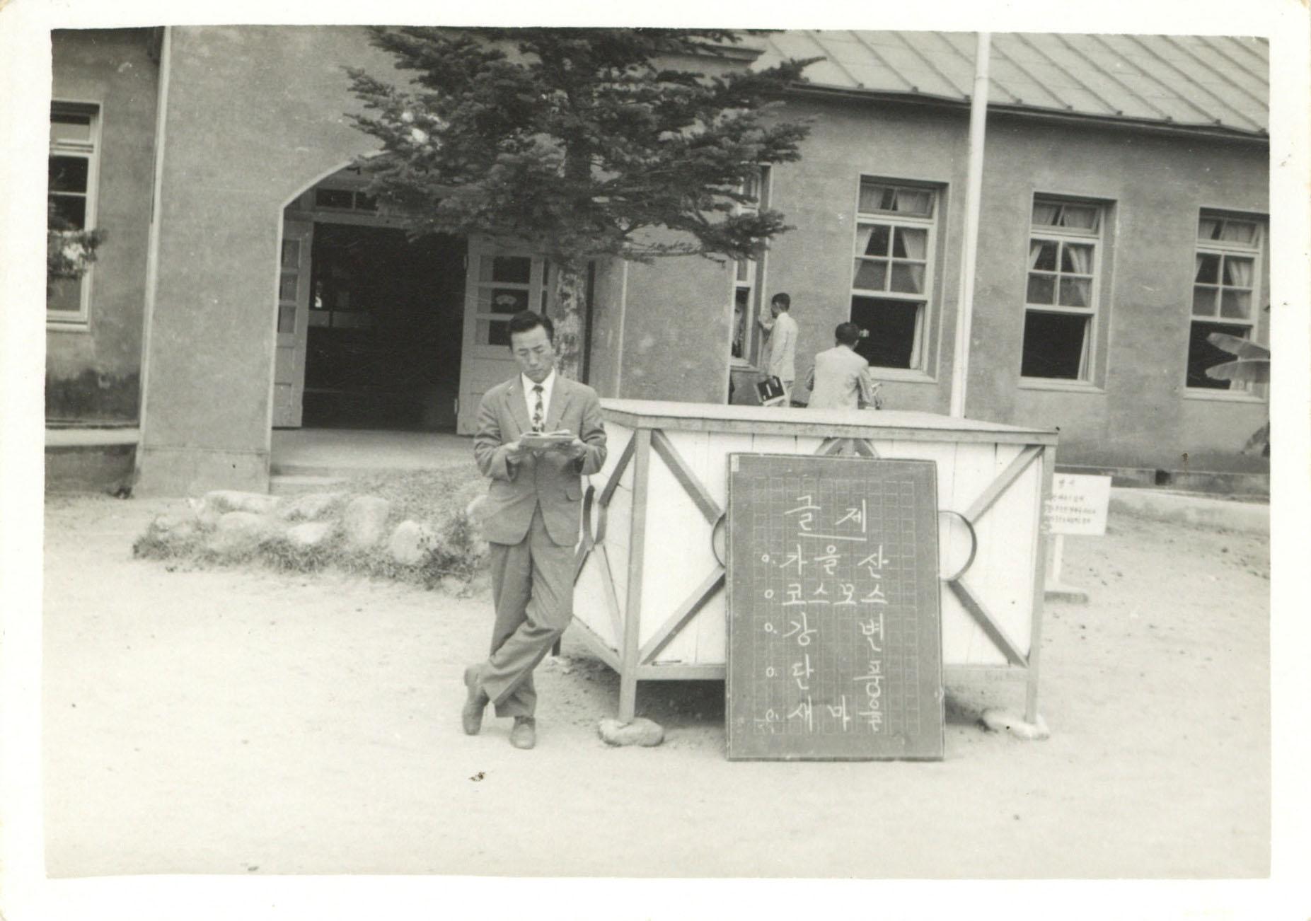 상북중학교 1960년대 독서대회 건물앞에서 찍은 교사사진