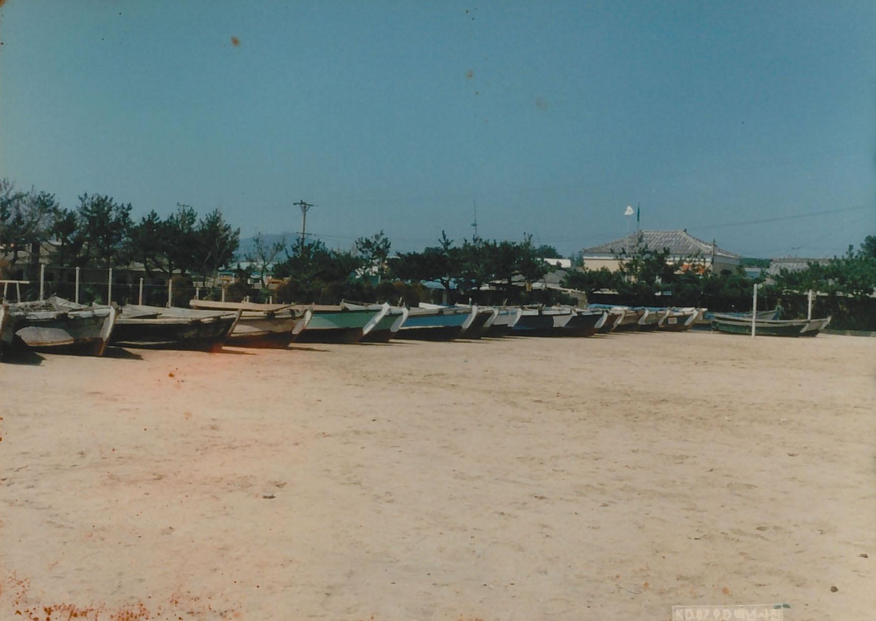 서생국민학교 1987년 대피시켰던 어선을 다시 작업 현장 바다로 옮기는 모습 사진