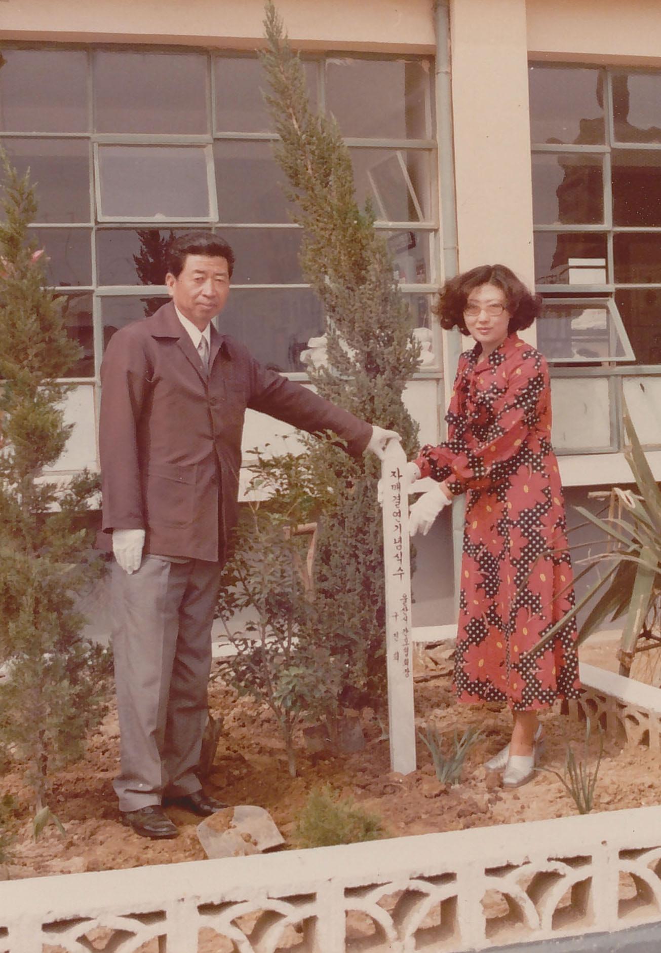 양사국민학교 1976년대 양사초등학교-간호협회간 자매결연 행사 사진_기념식수 식재 모습