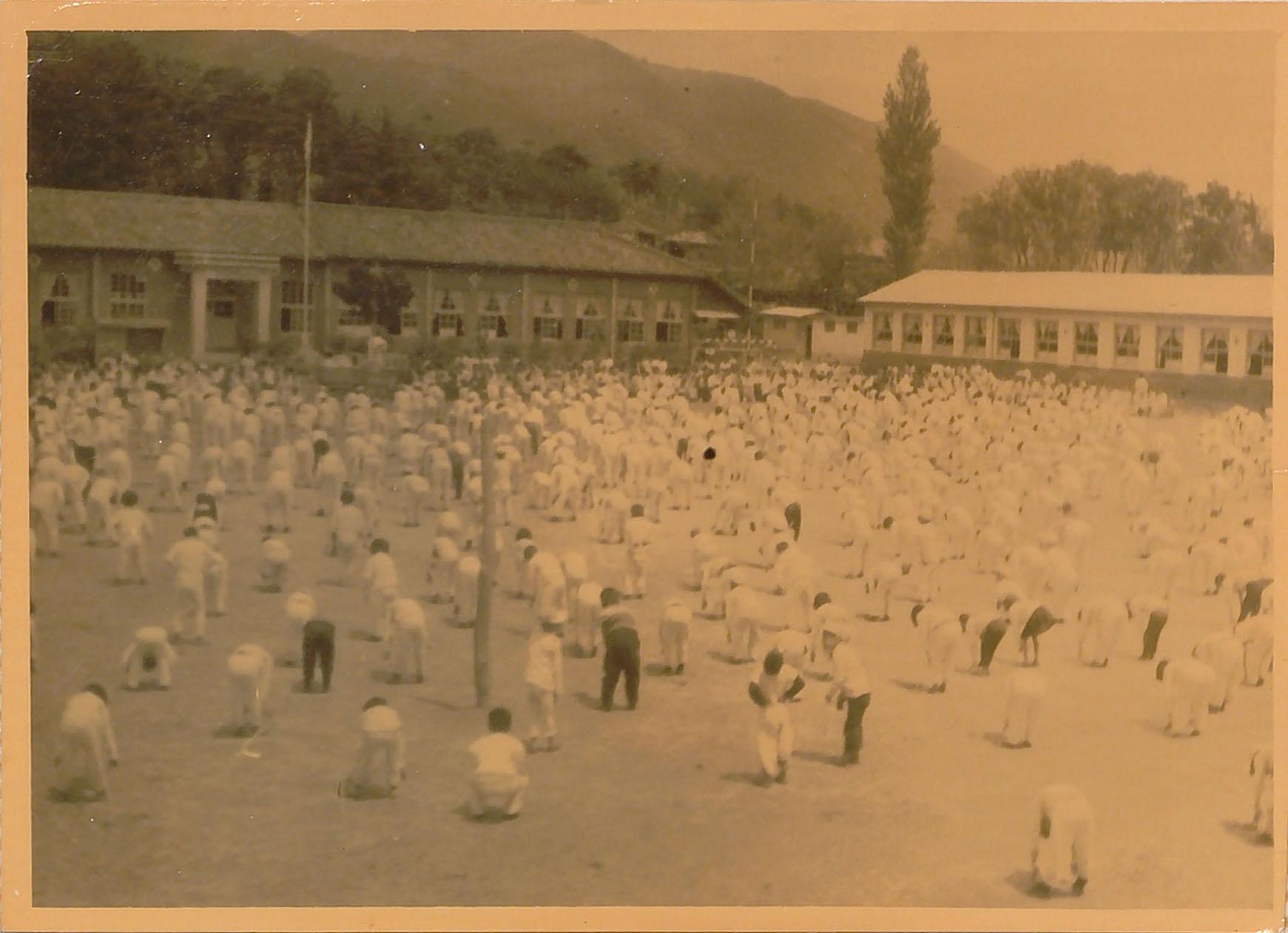 검단국민학교 1972년 어린이날 교내 소체육회 전체 체조 광경