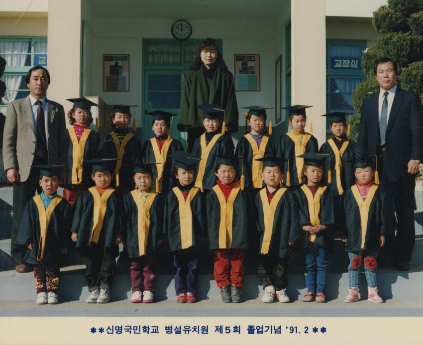 신명국민학교 병설유치원 제5회 졸업기념사진이다.