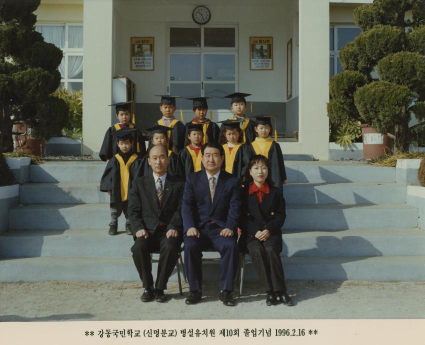 강동국민학교 신명병설유치원 제10회 졸업사진이다.