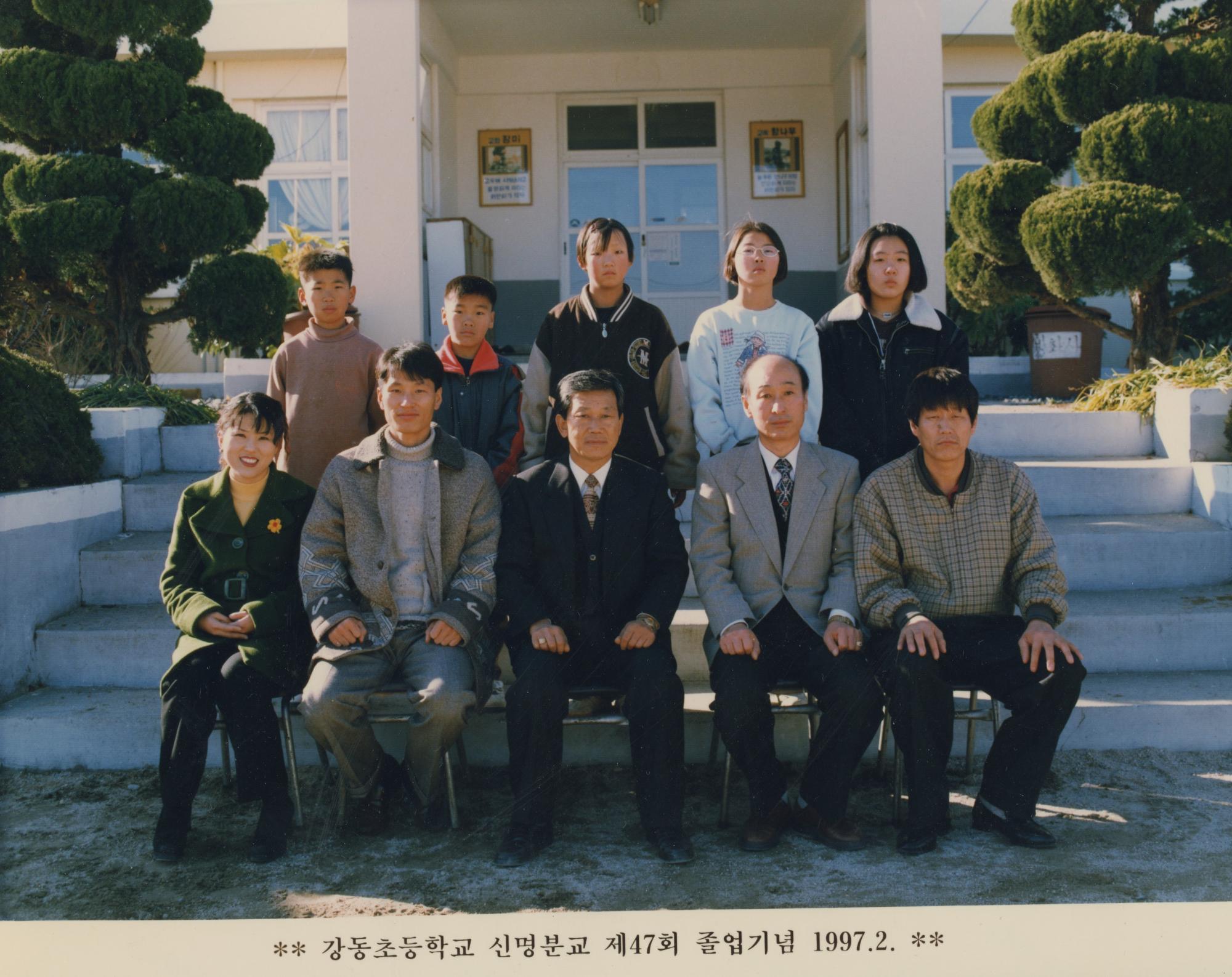 강동초등학교 신명분교 제47회 졸업기념 사진이다.