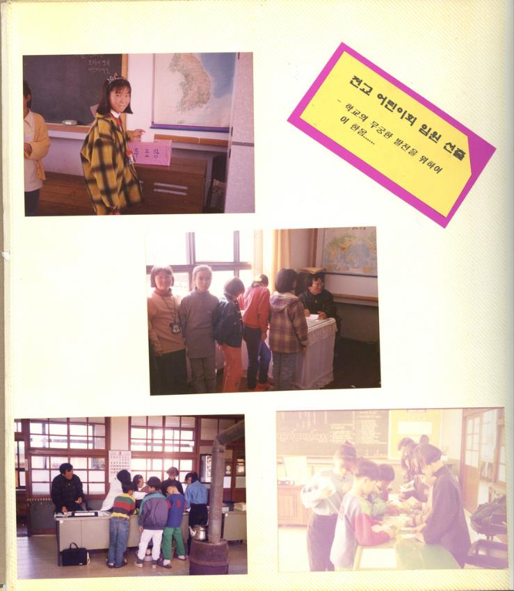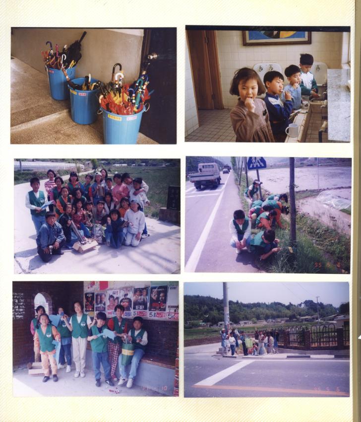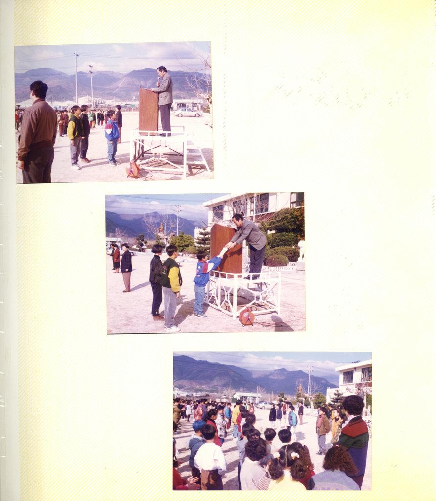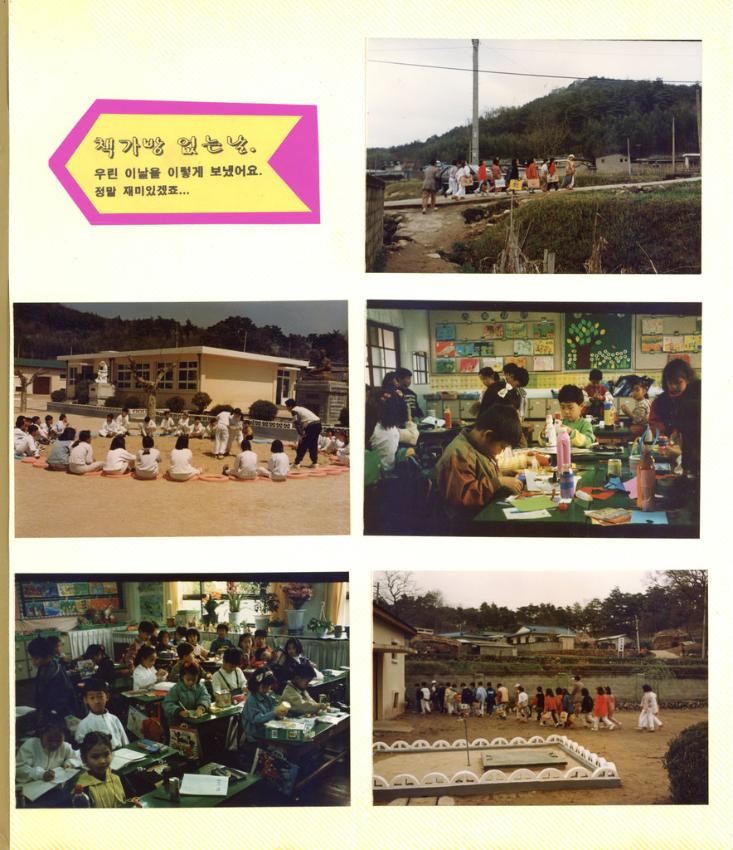 사택철거, 책가방 없는날등 여러 학교행사들을 체험하는 사진 졸업사진들을 모아둔 앨범이다.