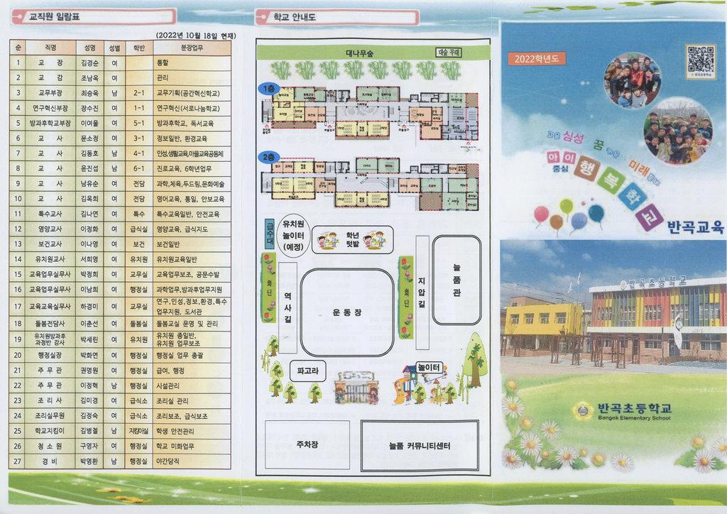 학교 안내도,학교 현황, 학교의 상징등이 요약된 학교요람 팜플렛이다.