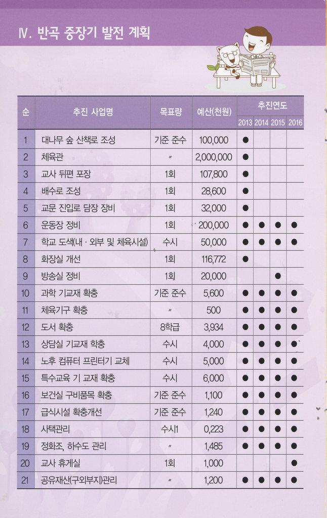 반곡초등학교 2011년도의 학교현황과 반곡교육목표, 학교경영주요실적, 학교경영주요실적과 학교경영조직에 대해 적혀 있는 팜플렛이다.
