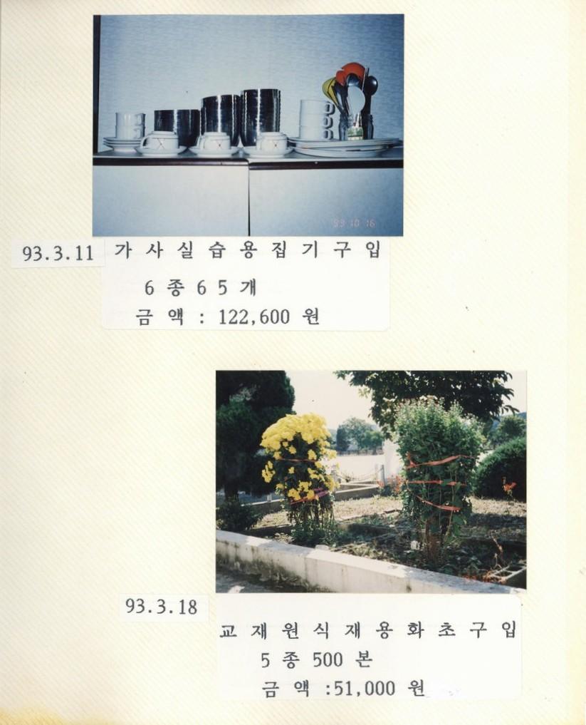 학교수업 사진과 학교활동에 필요한 물품구입한 것들에 대한 정보가 실린 사진첩이다.
